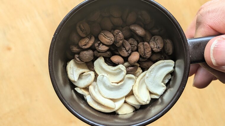 ここまでの検証だとコーヒー粉8g、カシューナッツ粉3gがベストな味わいでした。